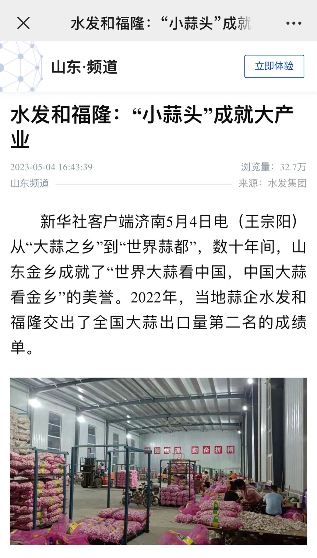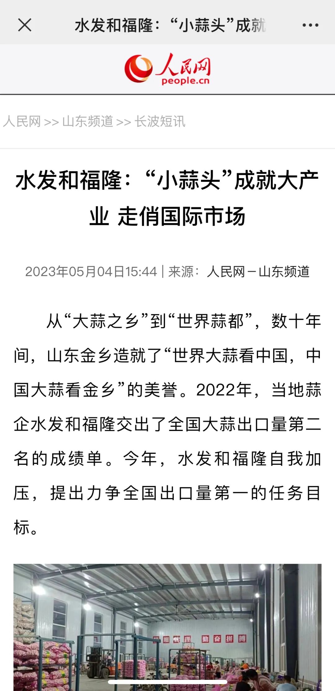 從“大蒜之鄉(xiāng)”到“世界蒜都”,數(shù)十年間,山東金鄉(xiāng)造就了“世界大蒜看中國(guó),中國(guó)大蒜看金鄉(xiāng)”的美譽(yù)。2022年,當(dāng)?shù)厮馄笏l(fā)和福隆交出了全國(guó)大蒜出口量第二名的成績(jī)單。今年,水發(fā)和福隆自我加壓,提出力爭(zhēng)全國(guó)出口量第一的任務(wù)目標(biāo)。
