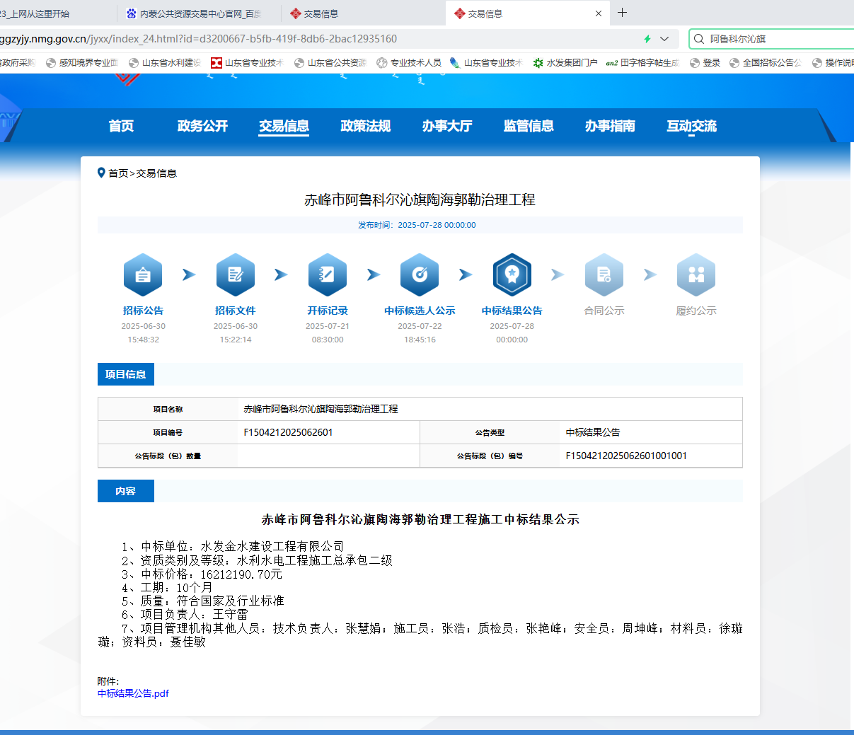 近日,內(nèi)蒙古赤峰市阿魯科爾沁旗陶海郭勒治理工程施工項目招標結果揭曉,水發(fā)金水建設工程有限公司成功中標。