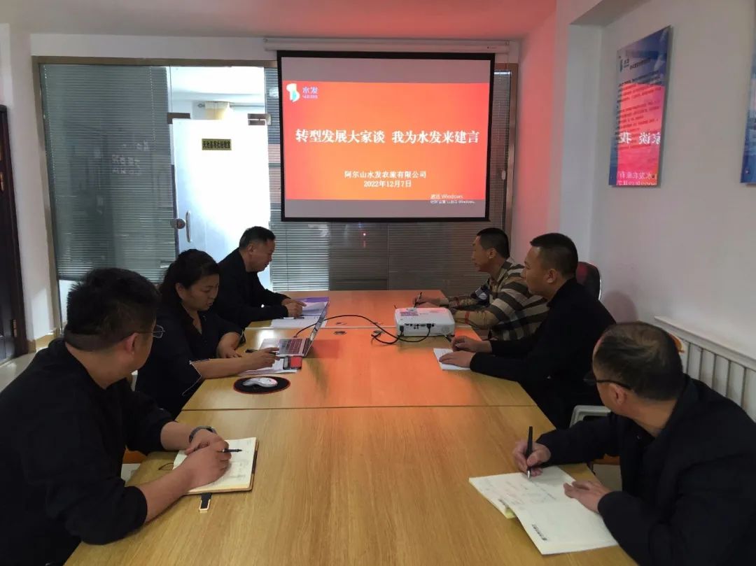 12月7日下午,阿爾山水發(fā)董事長(zhǎng)齊先棟組織班子成員開(kāi)展“轉(zhuǎn)型升級(jí)大家談,我為水發(fā)來(lái)建言”活動(dòng)。