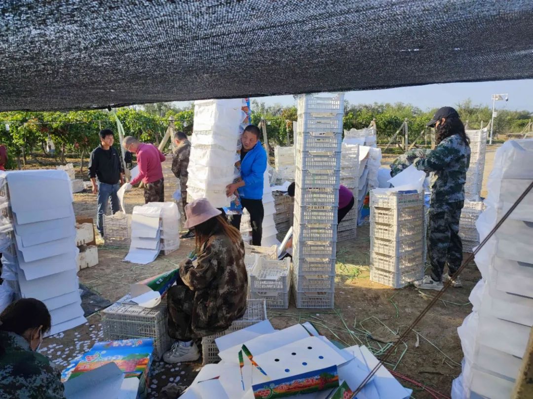 ▲雙節(jié)期間,雙河水發(fā)集團(tuán)權(quán)屬果蔬公司全體員工在新疆生產(chǎn)建設(shè)兵團(tuán)第五師雙河市葡萄基地?fù)屖掌咸选?/span>
